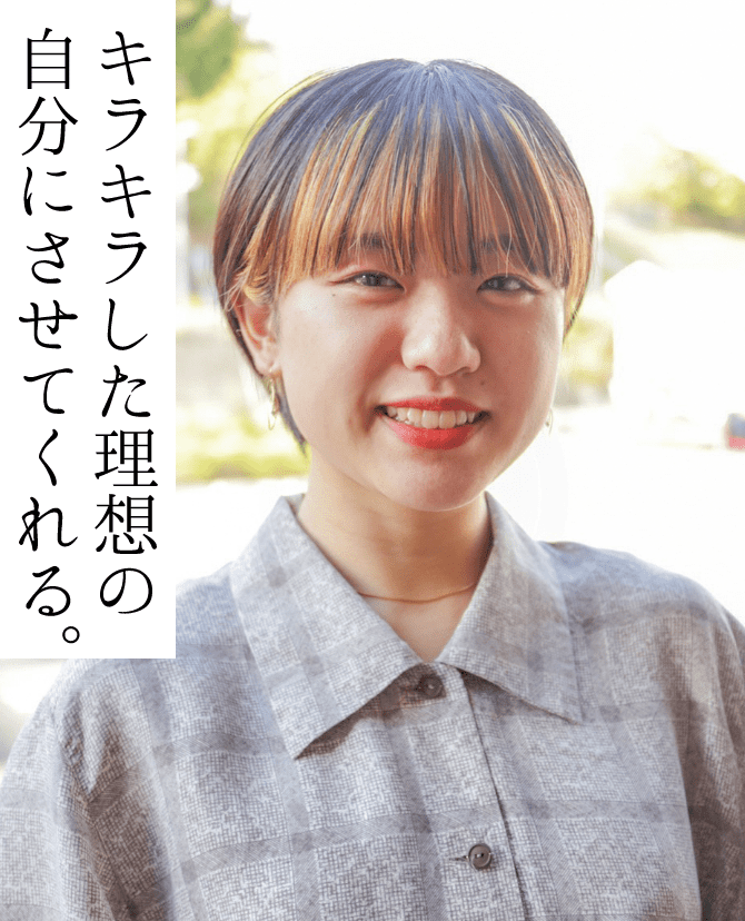 不安も抱えながら初めてお店に入った時、とても明るい雰囲気を感じて安心したのを覚えています。そして話を丁寧に聞いてくれて、キラキラした理想の自分にさせてくれる。そんな素敵な先輩と一緒の場所で働きたいと思ったのが、私がプロッソルに入りたいと決めた理由です。